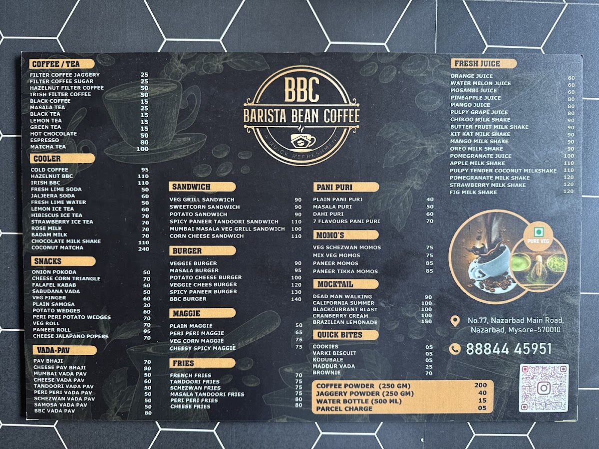 Welcome to Barista Bean Coffee, a cozy café nestled in the heart of Mysuru on Nazarbad Main Rd. Here, you’ll discover a delightful menu that caters to every palate, all while maintaining a vegetarian ethos. The star of the show is undoubtedly their filter coffee—strong, creamy, and perfect for an evening hangout with friends.